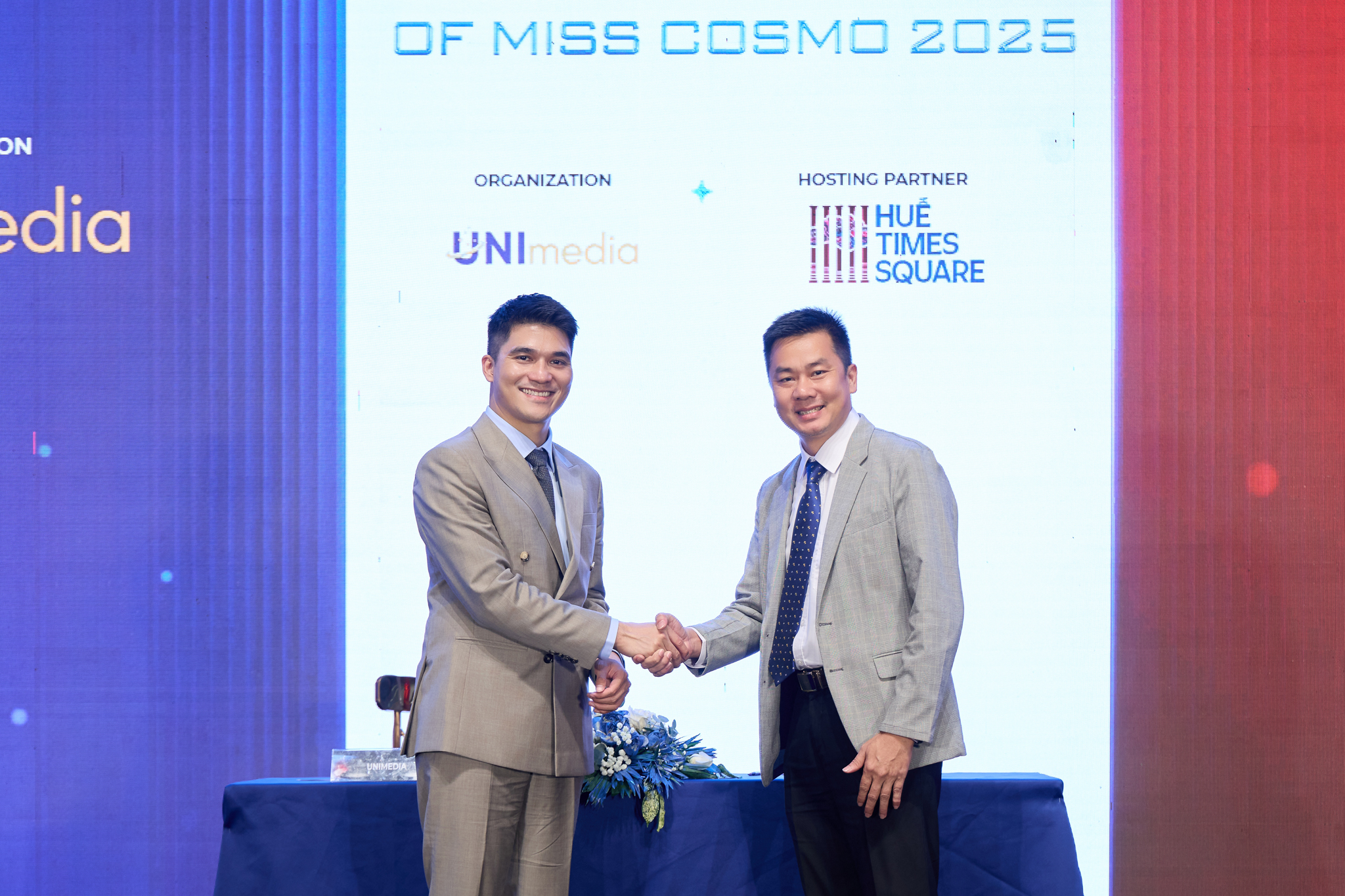 Tại sự kiện, ông Nguyễn Xuân Hà – CEO Huế Times Square và ông Trần Việt Bảo Hoàng – CEO Miss Cosmo, Trưởng Ban Tổ Chức , đã chính thức ký kết Thỏa thuận Hợp tác Chiến lược.