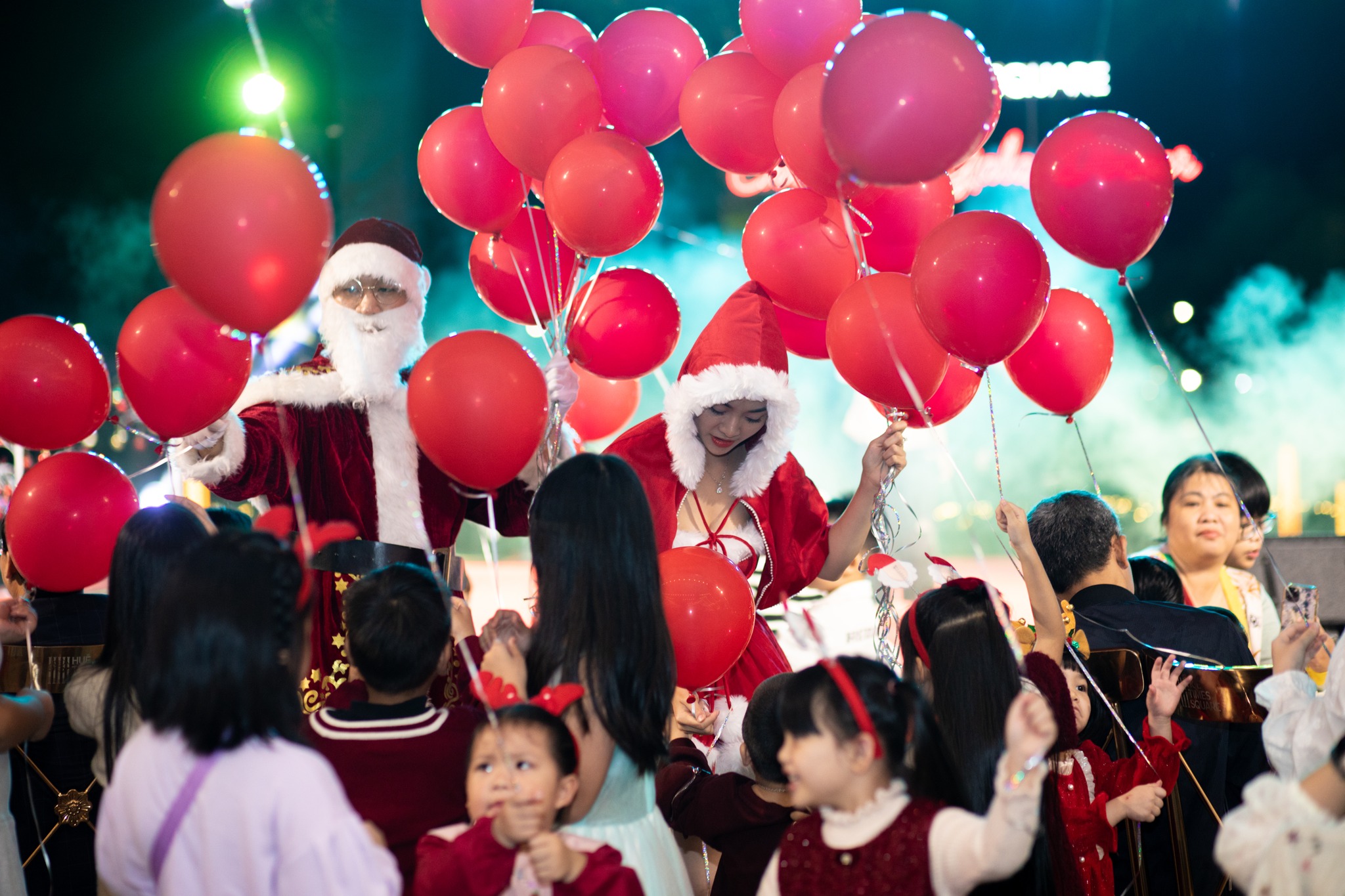 Không khí Giáng Sinh lan tỏa khắp quảng trường với dàn đồng ca Giáng Sinh, hình ảnh ông già Noel, hoạt động bốc thăm may mắn cùng nhiều phần quà hấp dẫn. Sân khấu ngoài trời rực rỡ ánh sáng trở thành điểm nhấn, nơi lưu giữ những khoảnh khắc sum vầy và niềm vui của mùa lễ hội.