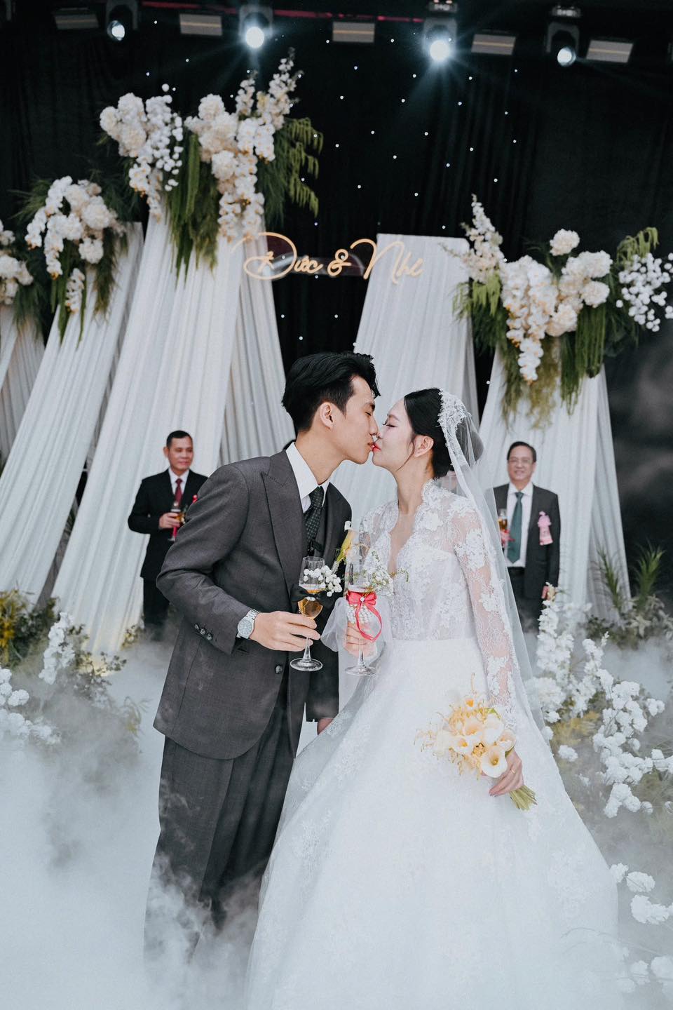 Lễ cưới được tổ chức tại khu sự kiện Quảng trường Thời đại Huế – nơi kết hợp hài hòa giữa sự sang trọng hiện đại và cảm hứng nghệ thuật tinh tế. Từ hệ thống ánh sáng, âm thanh, đến cách bài trí bàn tiệc, phông nền và hoa tươi… tất cả đều được sắp xếp chỉ chu để tôn vinh câu chuyện tình của cô dâu chú rể.