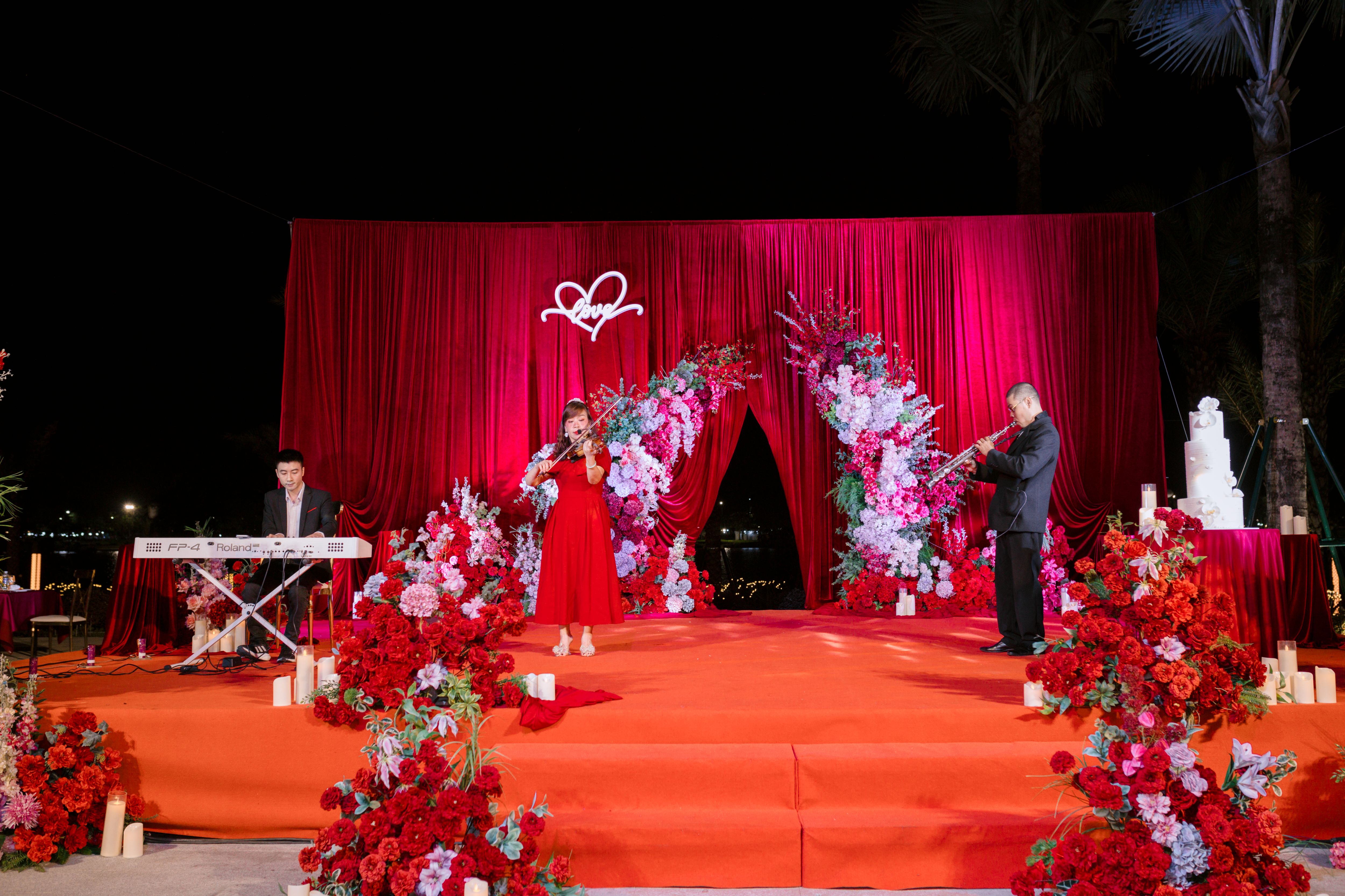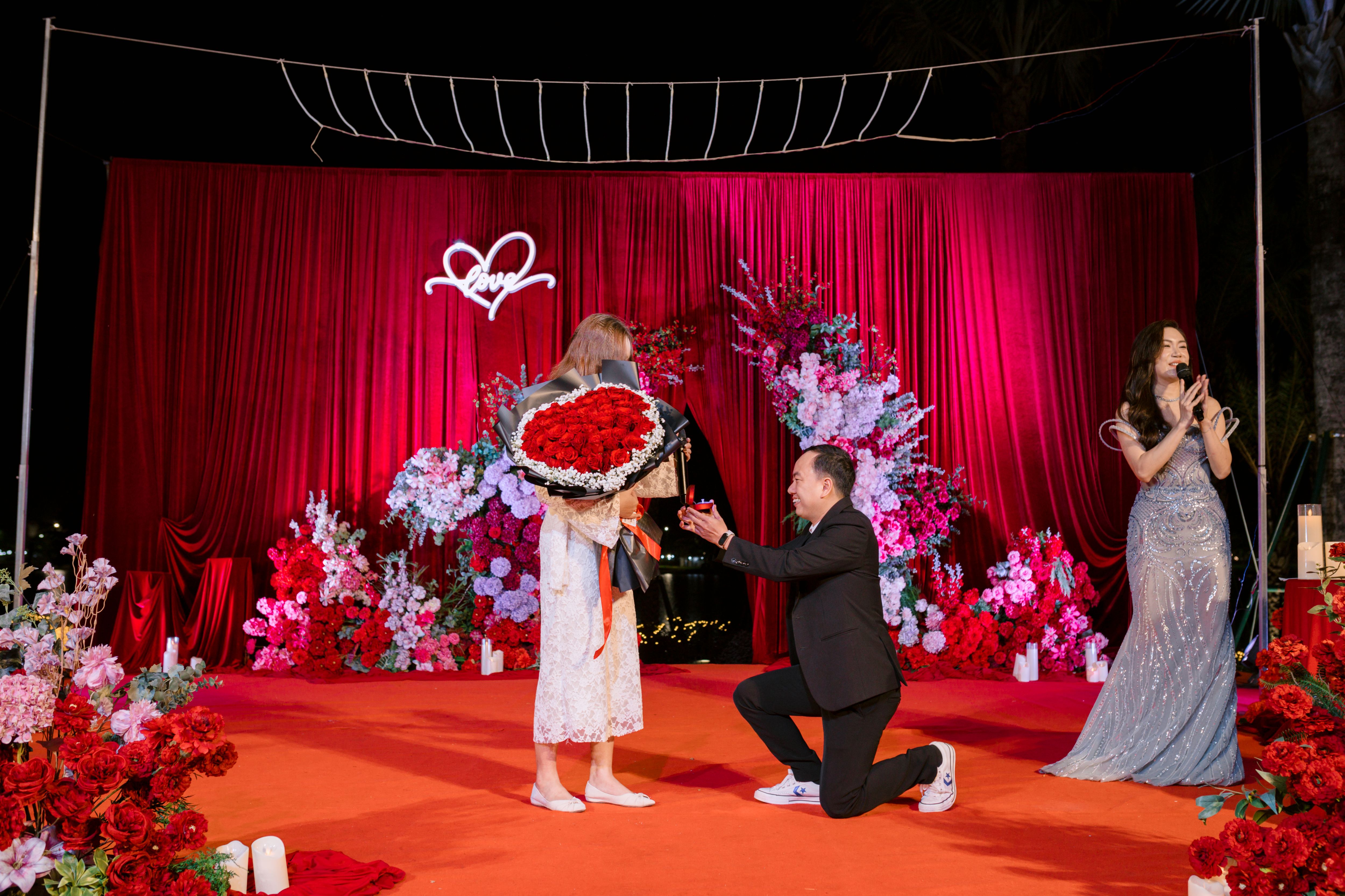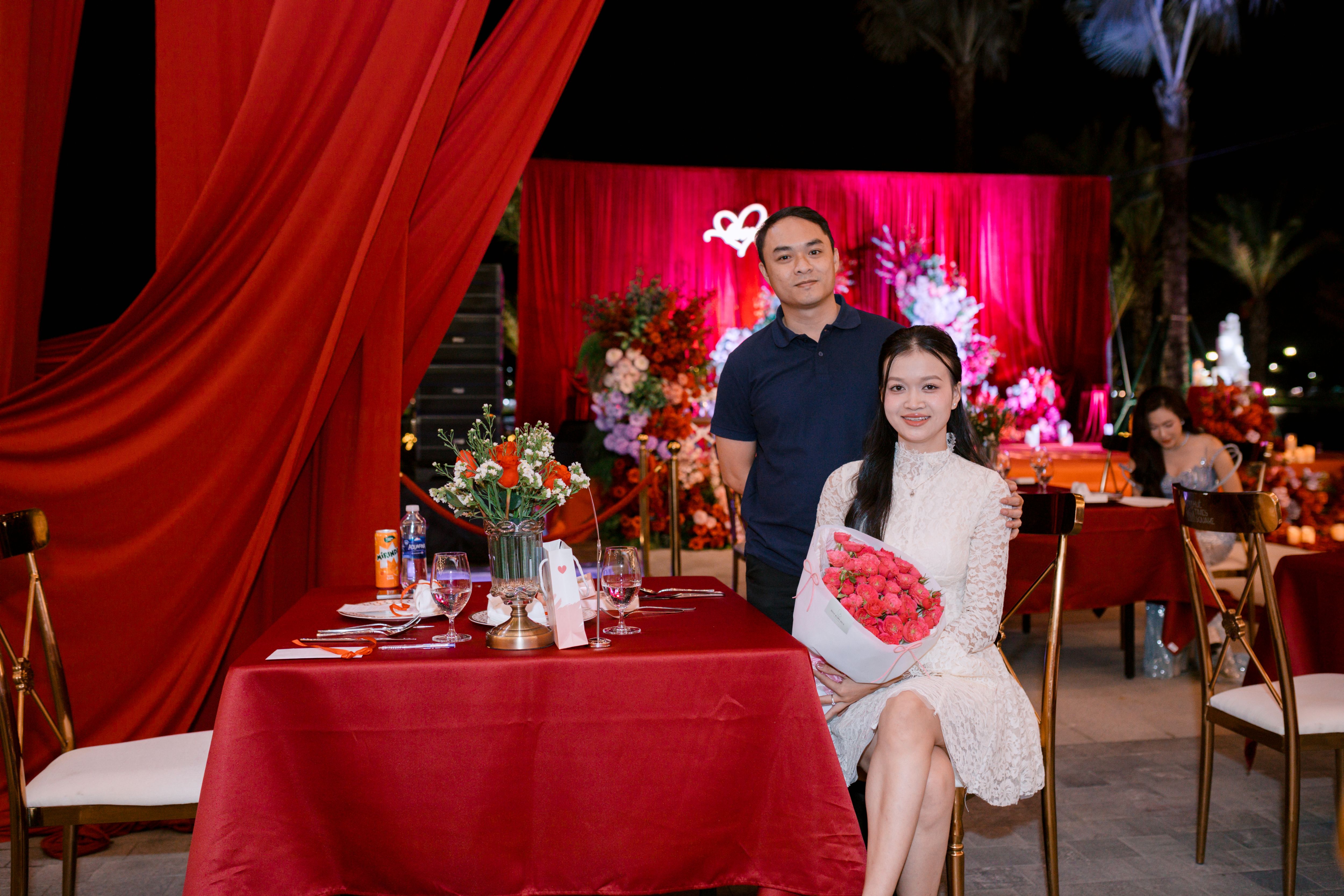 Điểm nhấn của đêm chính là màn cầu hôn được dàn dựng riêng biệt – nơi cảm xúc chạm đến đỉnh điểm. Trong không gian lung linh của ánh nến và âm nhạc, lời ngỏ được cất lên không chỉ là một câu hỏi, mà là lời hứa cho hành trình dài phía trước.