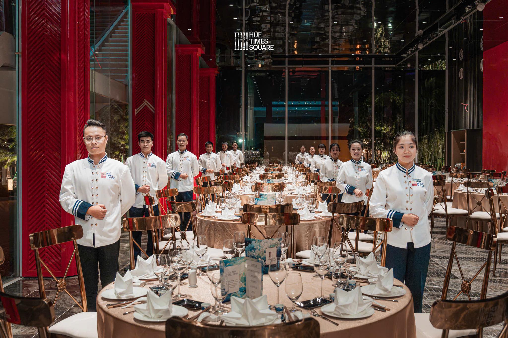 Đội ngũ hỗ trợ sự kiện và nhân sự hành động của Times Square Huế đã làm việc đồng bộ, chuyên nghiệp ở từng khâu: set-up không gian, điều phối chương trình, phục vụ tiệc và hỗ trợ khách mời.